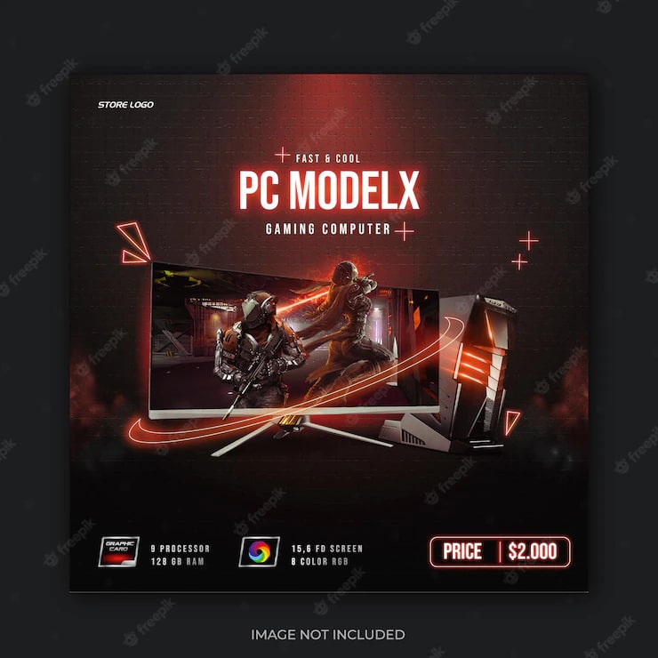 دانلود رایگان فایل لایه‌باز موڪاپ قالب آماده پست اینستــاگرام با موضوع فروش سیستم گیمینگ