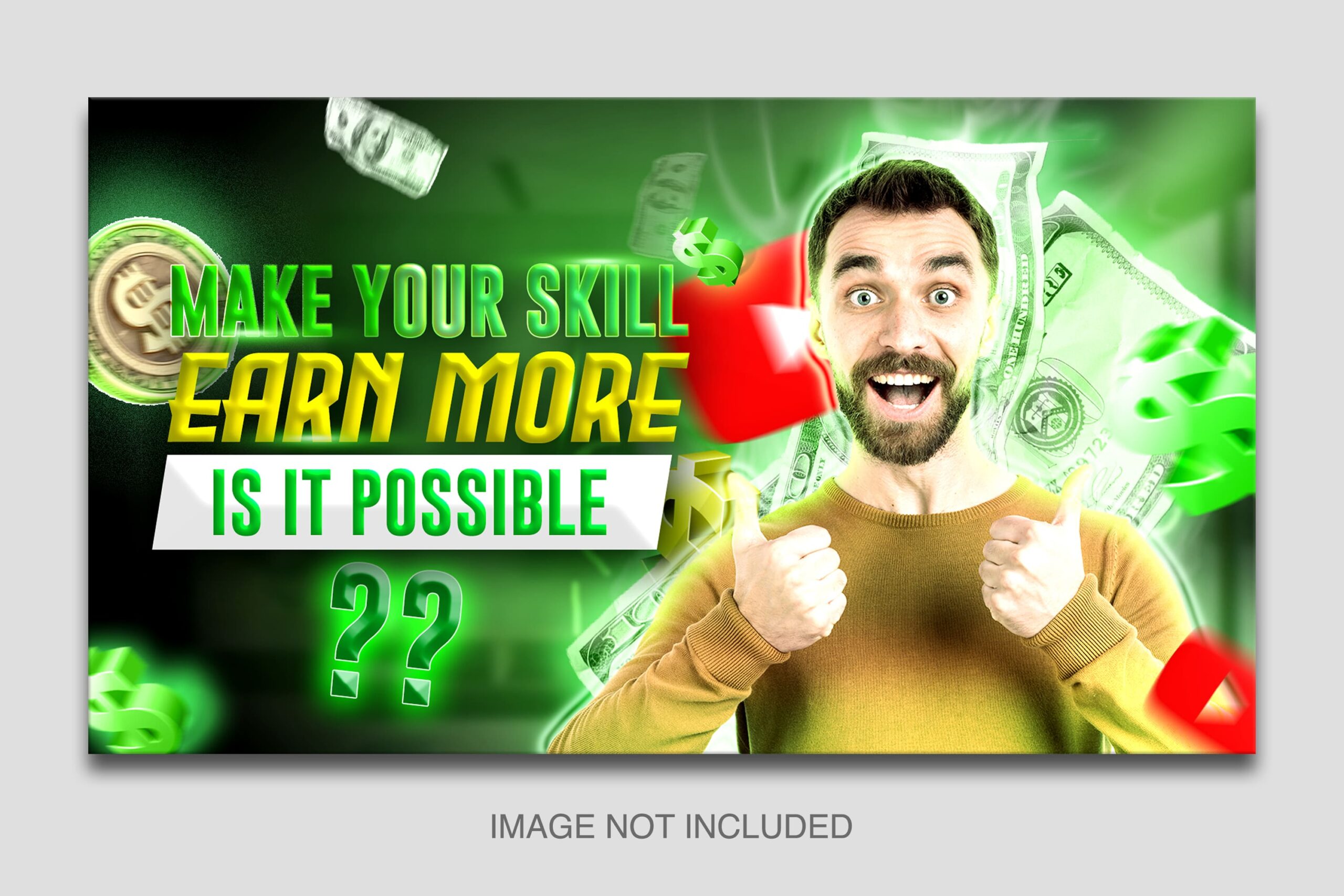 اگر قصد دارید ویدیوهای یوتیوب خود را با تامنیل‌های حرفه‌ای در زمینه کسب درآمد ارتقا دهید، این قالب PSD آماده بهترین انتخاب برای شماست. این فایل طراحی شده با تمرکز بر موضوعات مالی، سرمایه‌گذاری و راه‌های کسب درآمد، به شما امکان می‌دهد به راحتی تامنیل‌هایی جذاب و تخصصی بسازید که بینندگان را به کلیک و دنبال کردن محتوا ترغیب کند.